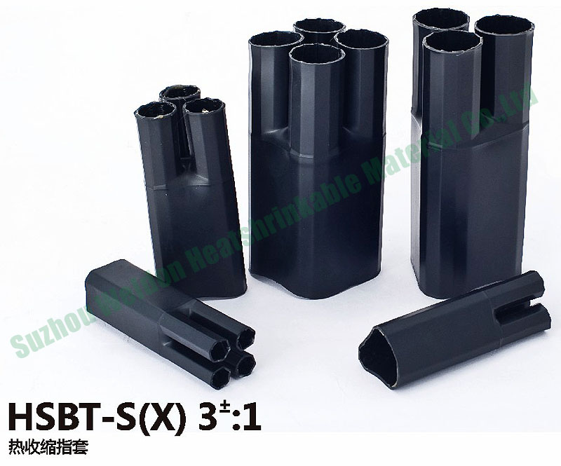 HSBT采用注塑成型技术,经过辐射交联,特殊扩张技术,大小端部位采用热熔胶涂覆,在电缆分支部位起到防水、防潮、密封的作用